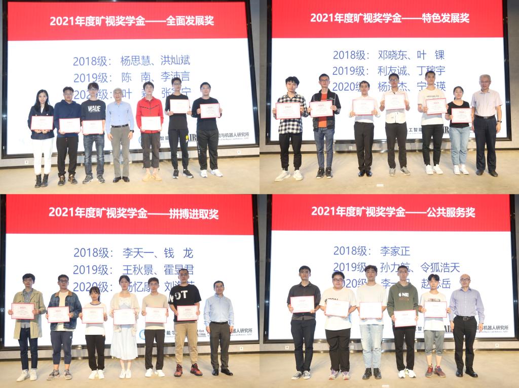 “旷视奖学金”颁奖仪式。由郑南宁教授、杨森教授、辛景民教授和兰旭光教授分别为获得全面发展奖、特色发展奖、拼搏进取奖和公共服务奖的同学颁奖。